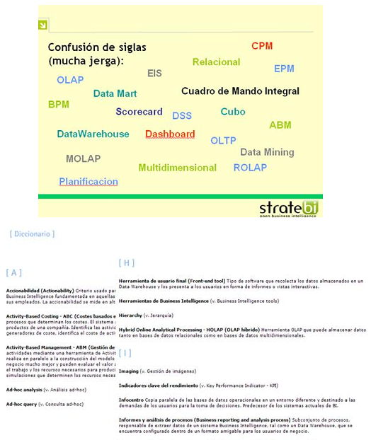 Como en otras muchas disciplinas existe una gran variedad de acrónimos, términos y definiciones que dificultan la comprensión por parte de los "no expertos" de las características de los sistemas Business Intelligence. En este punto trataremos los principales términos que se manejan, las diferencias, cuales son más importantes, etc...de forma que podamos desenvolvernos con soltura en una conversación o reunión relativa a Inteligencia de Negocio. Haremos entrega a los asistentes de un glosario de términos Business Intelligence, haciendo hincapié en su aplicación práctica en el día a día de las Organizaciones. |