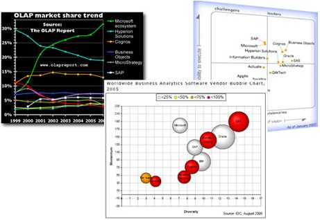 El Business Intelligence no para de cambiar. No sólo por las fusiones y adquisiciones de productos, que también comentaremos , sino por la gran cantidad de nuevas alternativas, como Soluciones Open Source, Appliances , Real Business Intelligence, SaaS BI, Database Columns... y mucho más. Las herramientas de Inteligencia de Negocio evolucionan constantemente, por lo que ayudaremos a fijar cuales son las principales tendencias que se esperan en los próximos años, para estar preparados y adelantarnos en su uso. |